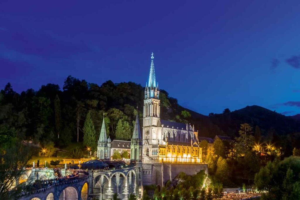 Dia 02/10 – Chegada a Lourdes pela manhã, chekin no hotel e almoço. restante tarde livre a gosto pessoal, jantar no hotel e poderão sair para ver e assistir a noite no Santuário.